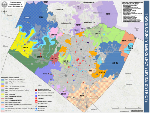 A: An Emergency Services District is a political subdivision of the State of Texas, similar to a School District, Library District, or Hospital District. There are 12 Emergency Services Districts in Travis County.